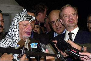 圖文:巴以美三方將舉行最高級(jí)會(huì)議 2000年10月12日 15:20 ![]() 歐盟外交事務(wù)官索拉納(左)會(huì)見約旦國(guó)王阿卜杜拉(右),討論化解以巴危機(jī)。 ![]() 英國(guó)外交大臣庫(kù)克(右)與巴勒斯坦領(lǐng)袖阿拉法特會(huì)晤,商討以巴局勢(shì)。 ![]() 以巴流血沖突今天再造成至少2人死亡。 中新網(wǎng)北京10月12日消息:經(jīng)過多日穿梭中東的“斡旋旅程”后,聯(lián)合國(guó)秘書長(zhǎng)安南宣布,以巴領(lǐng)袖已經(jīng)同意參加由美國(guó)主持的三方高層安全會(huì)議,以停止以巴暴力沖突。而隨行的聯(lián)合國(guó)發(fā)言人?斯卤硎荆材险J(rèn)為,這是終止以巴沖突,及重開以巴和平進(jìn)程會(huì)談的重要一步。 估計(jì)峰會(huì)最早會(huì)在周四舉行。 以巴沖突今天進(jìn)入第14天,多國(guó)高層官員及聯(lián)合國(guó)秘書長(zhǎng)安南不停穿梭中東地區(qū),斡旋以巴;。 聯(lián)合國(guó)發(fā)言人表示,這項(xiàng)于1998手成立的三方安全委員會(huì)大會(huì),將首度由三方最高階層與會(huì),以解決暴力沖突問題。而會(huì)議將由以巴雙方的高級(jí)軍官及安全官員出席,由美國(guó)中情局局長(zhǎng)特內(nèi)擔(dān)任主席。預(yù)計(jì)會(huì)議將在周四展開。 安南將會(huì)前往黎巴嫩,協(xié)助救出3名被黎巴嫩真主黨擄走的以軍。另一方面,以巴雙方并未證實(shí)會(huì)出席會(huì)議。因?yàn)橐陨蓄I(lǐng)袖巴拉克與巴勒斯坦領(lǐng)袖阿拉法特均要咨詢雙方的軍官。 埃及總統(tǒng)穆巴拉克則繼續(xù)拒絕在開羅召開四方峰會(huì),認(rèn)為峰會(huì)必須在以軍愿意撤離巴勒斯坦部地區(qū),及接受成立國(guó)際調(diào)查委員會(huì),以了解事發(fā)原因。同時(shí),希望在10月21日舉行阿拉伯峰會(huì)后,以巴雙方才展開會(huì)談。而意大利則提出愿作為峰會(huì)的會(huì)談場(chǎng)地。 以巴雙方領(lǐng)袖則繼續(xù)指責(zé)對(duì)方在成立國(guó)際調(diào)查委員會(huì)的細(xì)節(jié)上不肯讓步以及以軍在沖突中濫用暴力等。巴拉克發(fā)出警告說,巴國(guó)官方近日釋放了數(shù)名伊斯蘭激進(jìn)分子,并讓他們發(fā)動(dòng)恐怖襲擊,并呼吁以色列人要小心防衛(wèi)。 盡管以巴暴力沖突規(guī)模已縮少,但今日至少又有2名巴勒斯坦人在沖突中喪生。沖突已造成100多人死亡,數(shù)以千計(jì)的人受傷。(圖文據(jù)外電) |