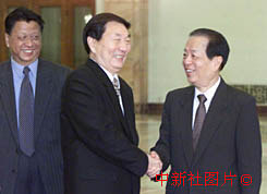 中國(guó)國(guó)務(wù)院總理朱镕基12日離開北京,前往日本、韓國(guó)訪問,并出席在漢城舉行的第三屆亞歐會(huì)議。國(guó)務(wù)院副總理錢其琛等在北京人民大會(huì)堂送行。中新社記者 毛建軍 攝