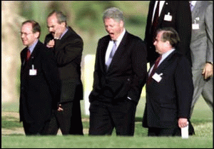 圖文:中東緊急峰會首日無進(jìn)展 2000年10月17日 07:19 克林頓希望以巴雙方能化解歧見,停止沖突。 克林頓為中東和平多年來盡力斡旋,在峰會休息時(shí)間,也出現(xiàn)了這個(gè)打呵久的倦態(tài)。 中新網(wǎng)北京10月17日消息:綜合通訊社報(bào)道,旨在結(jié)束巴以流血沖突的中東問題多邊首腦會議﹐星期一在埃及的紅海渡假勝地沙姆沙伊赫開幕﹐但巴勒斯坦文化新聞部長拉博對記者說﹐會議至今沒有取得進(jìn)展。 綜合外電報(bào)道,聯(lián)合國秘書長安南﹑巴勒斯坦民族權(quán)力機(jī)構(gòu)主席阿拉法特﹑以色列總理巴拉克﹑美國總統(tǒng)克林頓﹑約旦國王阿卜杜拉和歐盟負(fù)責(zé)外交和安全政策的高級代表索拉納出席了會議。 拉博表示﹐巴勒斯坦要求以色列不讓武裝的猶太定居者留在巴勒斯坦管治地區(qū)之內(nèi)。他還表示﹐以方提出了法塔赫組織持有武器的問題﹐以及要求重新逮捕巴勒斯坦警方最近釋放的哈馬斯分子的問題。 他指出﹕“他們(以色列)在這次峰會上的全部愿望﹐就是討論這兩件事。但這并不是我們來此的目的! 以色列總理巴拉克的安全首腦亞托姆說﹐這次峰會“情況復(fù)雜﹐充滿困難和爭執(zhí)”。但他又堅(jiān)稱各方“都有解決問題的真誠愿望”。但以色列代表團(tuán)的另一名成員對此不以為然﹐指責(zé)巴勒斯坦人造成僵局。 埃及總統(tǒng)穆巴拉克在開幕式上發(fā)表講話﹐呼吁結(jié)束在巴勒斯坦領(lǐng)土上的“半戰(zhàn)爭狀態(tài)!币?yàn)檫@種狀態(tài)已造成大量人員傷亡的悲劇。他呼吁“挽救和平進(jìn)程尚余的誠信”。 他指責(zé)以色列說﹕“巴勒斯坦人民過去兩周所受到的侵犯﹐驅(qū)使我召集這次會議! 美國總統(tǒng)克林在峰會開幕辭中宣稱﹕“我們不能承受失敗。和平進(jìn)程的未來和中東地區(qū)的穩(wěn)定處于危急之中! 克林頓呼吁設(shè)立調(diào)查團(tuán)去調(diào)查以巴雙方這次多年來最嚴(yán)重沖突的原因﹐避免事件重演。 他說﹕“我們希望談判能再次展開! 但巴拉克在會上強(qiáng)調(diào)﹐“以色列不接受任何一種國際調(diào)查委員會﹐只會接受一個(gè)以美國為首的調(diào)查小組”。 作為中東和平進(jìn)程聯(lián)合發(fā)起者的俄羅斯﹐沒有出席中東峰會。外長伊萬諾夫在莫斯科說﹕“我們沒有接到邀請!钡麑Υ朔磻(yīng)低調(diào)﹐稱峰會成果比俄羅斯是否參與更重要。 上午的會談歷時(shí)約三十分鐘?肆诸D和穆巴拉克分別致開幕辭之后﹐會議小休。 白宮發(fā)言人克勞利說﹐即使以巴雙方無法達(dá)成協(xié)議﹐克林頓也不打算再延長停留期。他說﹐克林頓計(jì)劃于午夜離開﹐但可能會推遲十二小時(shí)。 雖然總統(tǒng)任期只剩下三個(gè)月左右﹐但克林頓仍然希望能夠促成和議。不過﹐對這次首腦會﹐最樂觀的期望亦只是一項(xiàng)停火協(xié)議和一個(gè)雙方重開談判的日期。 克林頓說﹕“我們不應(yīng)因?yàn)檫^去幾個(gè)星期發(fā)生的事而完全放棄一切! 阿拉法特﹑巴拉克和克林頓在首腦會召開前都分別與穆巴拉克會晤過。 一名以色列高官說﹐巴拉克對穆巴拉克說﹐除非阿拉法特重新逮捕近日被巴勒斯坦釋放的大批激進(jìn)分子﹐以及命令保安部隊(duì)停止開槍和參與街頭騷亂﹐否則他無法撤走以色列軍隊(duì)或重開巴勒斯坦地區(qū)! 巴勒斯坦議員兼政治分析員阿姆魯說﹕“我不認(rèn)為這次首腦會可以取得任何突破。即使有任何的成功﹐亦將是極之微小的﹐而且不保證可以使到緊張局勢結(jié)束! |