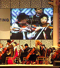 亞歐會議閉幕式上,來自與會亞歐二十五個國家的樂手組成臨時的樂隊,演奏“永恒的心靈”,為亞歐會議助興。中新社記者:王曉暉 攝