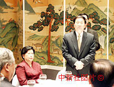 國務(wù)院總理朱镕基22日在濟(jì)州島參加韓中友協(xié)舉行的午餐會。中新社記者 王曉暉 攝
