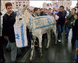 圖文:以色列軍隊(duì)包圍巴勒斯坦村莊 2000年10月24日 08:55 ![]() 巴勒斯坦示威者在一頭驢子身上用油漆寫上以色列總理巴拉克的名字,并向該頭驢子投擲石塊泄憤。 ![]() 以軍包圍巴勒斯坦自治區(qū)內(nèi)的比特·杰拉村,防止巴勒斯坦人進(jìn)入村落,向猶太人定居點(diǎn)發(fā)動攻擊。 中新網(wǎng)北京10月24日消息:綜合外電報道,巴以局勢持續(xù)緊張,以色列國防部官員宣布,以軍已包圍了位于巴勒斯坦自治區(qū)城市伯利恒西北的村莊比特·杰拉,以防止巴勒斯坦激進(jìn)分子進(jìn)入鄰近的猶太定居點(diǎn)發(fā)動襲擊。同時,以軍也關(guān)閉了加沙國際機(jī)場,以切斷巴勒斯坦人對外聯(lián)系。 以色列國防軍總參謀長穆法茲說,以軍已包圍比特.杰拉村,防止巴勒斯坦人進(jìn)入該村莊,向鄰近猶太定居點(diǎn)吉魯?shù)貐^(qū)發(fā)動攻擊。 他并向巴勒斯坦人發(fā)出警告,聲稱若巴勒斯坦人再攻擊位于耶路撒冷南郊的吉魯?shù)貐^(qū),以軍將以一切手段進(jìn)行還擊。 據(jù)悉,周日一批不明身份的巴勒斯坦人在比特·杰拉村開槍襲擊,12幢以色列住宅遇襲,以軍隨即出動武裝直升機(jī),向該村發(fā)射導(dǎo)彈;以軍坦克也向該村開火,以軍的攻擊行動造成10名巴勒斯坦人中彈受傷。 吉魯?shù)貐^(qū)是以色列在1967年中東戰(zhàn)爭后占領(lǐng)的,隨后被納入耶路撒冷市政區(qū)。該地自上月末巴以流血沖突爆發(fā)以來,曾遭到5次攻擊。 巴以沖突目前已進(jìn)入第4周,但情況仍然非常緊張,至今已造成134人死亡,約4,000人受傷。 |