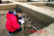 三星堆考古人員繪制坑內(nèi)出土文物