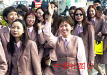 圖片:澳門婦女聯(lián)合會慶祝澳門回歸一周年 2000年12月18日 15:48 ![]() 澳門回歸一周年即將到來之際,澳門婦女聯(lián)合會的一群女青年在慶祝活動中開心一笑。中新社傳真宗金柱攝