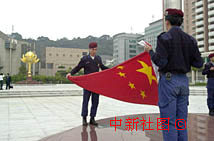 圖文:澳門警察在蓮花廣場彩排時疊好國旗 2000年12月18日 16:04 ![]() 澳門警察在蓮花廣場彩排時疊好國旗。澳門特區(qū)政府將于十二月二十日舉行盛大的升旗儀式,以慶;貧w祖國一周年,圖為當(dāng)?shù)鼐焓迦赵谏徎◤V場彩排時疊好國旗。中新社傳真宗金柱攝