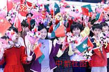 澳門(mén)小朋友手舉國(guó)旗場(chǎng)歡迎江澤民抵澳 2000年12月19日 20:02 ![]()