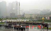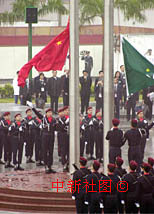 中新社澳門十二月二十日電(記者趙健) 今晨,澳門的天空飄著蒙蒙細(xì)雨,澳門的民眾卻絲毫不減慶;貧w周年的熱情,天剛蒙蒙亮,就扶老攜幼,紛紛趕往金蓮花廣場(chǎng),觀看慶祝澳門特別行政區(qū)成立一周年升旗儀式。 今天的金蓮花廣場(chǎng)充滿莊重神圣的氣氛,中央政府贈(zèng)送給澳門特別行政區(qū)的雕塑“盛世蓮花”顯得金碧輝煌。這尊澳門回歸時(shí)中央政府贈(zèng)送給澳門特區(qū)政府的賀禮,由花莖、花瓣、花蕊組成,象徵著澳門永遠(yuǎn)繁榮昌盛。今年國(guó)慶前夕,為了在這里舉行國(guó)慶升旗儀式、澳門特區(qū)政府將安放“盛世蓮花”的場(chǎng)地開(kāi)辟為金蓮花廣場(chǎng),成為澳門最重要的升旗儀式之地。廣場(chǎng)四周黃色和紅色的菊花爭(zhēng)奇斗艷,身著制服的澳門儀仗隊(duì)、特警和澳門警察局銀樂(lè)隊(duì)一早就整齊地列隊(duì)等候在這里,等候著升旗的莊嚴(yán)時(shí)刻。 全國(guó)政協(xié)副主席馬萬(wàn)祺、澳門特別行政區(qū)行政長(zhǎng)官何厚鏵及夫人、中央人民政府駐澳門特別行政區(qū)聯(lián)絡(luò)辦公室主任王啟人、外交部駐澳門特別行政區(qū)特派員原燾、中國(guó)人民解放軍駐澳門部隊(duì)司令員劉粵軍和政委賀賢書、澳門特別行政區(qū)主要官員、澳門的全國(guó)人大代表和全國(guó)政協(xié)委員以及澳門各界知名人士、社團(tuán)代表三百多人,也相繼來(lái)到這里,參加升旗儀式。 上午八時(shí)整,在雄壯的國(guó)歌聲中,鮮艷的五星紅旗和綠色的澳門特區(qū)區(qū)旗在金蓮花廣場(chǎng)冉冉升起,為澳門迎來(lái)了嶄新的一天。 帶著兩歲的女兒和五歲的兒子前來(lái)觀看升旗儀式的胡先生夫婦向記者表示,澳門歷來(lái)就是中國(guó)的領(lǐng)土,應(yīng)該讓孩子自小就增加對(duì)國(guó)家和澳門的認(rèn)識(shí)。看著國(guó)旗和區(qū)旗在澳門的土地上升起,心中感想很多,特別覺(jué)得驕傲和自豪。胡先生夫婦的話代表了眾多澳門民眾的心聲,當(dāng)升旗儀式結(jié)束后,觀禮的民眾仍不舍離去,不少人在飄揚(yáng)的五星紅旗和金色的蓮花前攝影,希望永遠(yuǎn)銘記住這難忘的時(shí)刻。 |