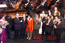新聞組照:江澤民出席澳門回歸一周年慶祝大會并作重要講話 2000年12月20日 14:06 ![]() 國家主席江澤民二十日出席澳門回歸一周年慶祝大會時向各界代表揮手致意。中新社傳真 宗金柱 攝 ![]() 國家主席江澤民二十日出席澳門回歸一周年慶祝大會并作重要講話。中新社傳真 宗金柱 攝 ![]() 國家主席江澤民二十日在澳門回歸一周年慶祝大會文藝演出后走上舞臺,提議全場齊唱《洪湖水 浪打浪》。中新社傳真 滿會喬 攝 |