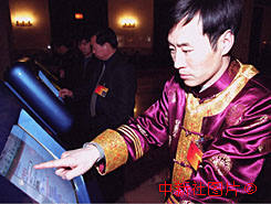 人大代表、畬族鄉(xiāng)長(zhǎng)雷紀(jì)文查閱民族政策文件 2000年3月10日 09:07 ![]()