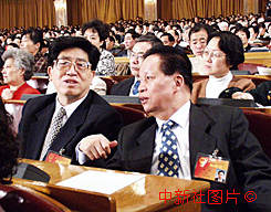 肖揚與韓杼濱出席九屆全國人大三次會議預(yù)備會 2000年3月5日 11:51 ![]()
