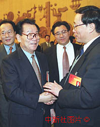 李瑞環(huán)與全國(guó)人大天津代表暢談天津發(fā)展大計(jì) 2000年3月7日 08:49 ![]()