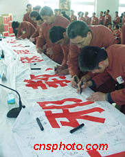 近百名悔悟的法輪功練習(xí)者22日參加了“反對(duì)邪教,保障人權(quán)”百萬公眾簽名活動(dòng),決心與法輪功邪教徹底決裂。中新社圖 潘旭臨 攝