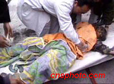 23日,執(zhí)勤民警在“法輪功”癡迷者自焚現(xiàn)場奮力搶救受傷者。中新社圖