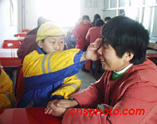 孩子給曾是法輪功練習(xí)者的媽媽擦拭淚水 2001年2月8日 09:00 ![]()