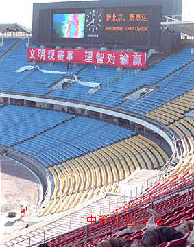 北京工體電子顯示屏調(diào)試完畢 2001年2月16日 08:33 ![]() 北京為申辦2008年奧運(yùn)會(huì)而改建三個(gè)重要場(chǎng)館,其中工人體育場(chǎng)的新型電子顯示屏已經(jīng)基本調(diào)試完畢。中新社記者 李剛 攝 |