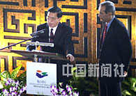 中國(guó)外經(jīng)貿(mào)部副部長(zhǎng)龍永圖二十六日在海南省博鰲亞洲論壇舉行的午餐會(huì)上,就中國(guó)加入世貿(mào)組織的現(xiàn)狀與前景發(fā)表演講,并回答各國(guó)嘉賓的問(wèn)題。中新社記者 賈國(guó)榮 攝