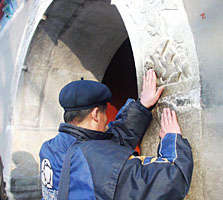 這是一位市民在北京白云觀中“摸猴”。按民間說法,在這里“摸猴”可獲得好運(yùn)。