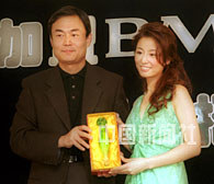紅遍內(nèi)地、香港及臺灣的藝人林心如28日在香港、臺灣媒體的見證下,簽約成為BMG唱片公司旗下歌星,BMG唱片公司崔震東先生并向林心如贈送一個琉璃如意,藉此祝福她的演藝事業(yè)更圓滿如意。中新社傳真 鄧慶樂 攝