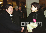 全國政協(xié)委員,著名歌唱家董文華和著名運(yùn)動員王義夫在政協(xié)開幕式上喜相逢。中新社記者 錢興強(qiáng) 攝