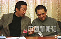 中國(guó)著名電影導(dǎo)演馮小寧與張藝謀,十一日參加全國(guó)政協(xié)九屆四次會(huì)議文藝組討論時(shí),相互切磋拍攝手法。中新社記者 劉可耕 攝