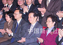 國務(wù)院副總理錢其琛日前會見中國駐紐約總領(lǐng)館、常駐聯(lián)合國代表團、其他常駐機構(gòu)及紐約僑學(xué)界代表。錢其琛副總理和夫人、中國駐美大使楊潔篪大使和夫人與紐約僑界代表合影留念。中新社圖 陳建 攝