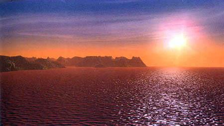 圖文:科普大片《宇宙與人》全文解說(shuō)詞 2001年3月27日 11:03 ![]() 在地球的某個(gè)時(shí)期,海洋中充滿了被氧化的鐵銹,海水呈現(xiàn)出紅色 物質(zhì)的宇宙能夠演化出生命,目前我們惟一所知道的就是我們自己的太陽(yáng)系,但準(zhǔn)確地說(shuō),生命很吝嗇地只選擇了它的第3顆行星———地球,生命在這顆星球上誕生并且改造這顆星球長(zhǎng)達(dá)近40億年。從生態(tài)上看,地球的美麗是獨(dú)一無(wú)二的,然而今天的地球因?yàn)橛辛巳祟,就不僅是生態(tài)星球,同時(shí)還是一顆文明星球。 地球上惟一直立行走的智能生物———人類,今天已經(jīng)非常輕松地生活在這顆行星上,但是,從古老文明走到現(xiàn)代文明,人類付出了巨大的代價(jià)。而二者之間的跨越的關(guān)鍵,恰恰要取決于人類認(rèn)識(shí)宇宙的深度。 望遠(yuǎn)鏡的原始創(chuàng)意 盡管有很多史前文明都顯示了人類認(rèn)知宇宙的興趣,但在中國(guó)四川西部三星堆發(fā)現(xiàn)的3000多年前的青銅器,大概是表現(xiàn)得最執(zhí)著的了。這是一個(gè)向往飛翔的古老集體,鳥(niǎo)是他們普遍的偶像,鳥(niǎo)的眼睛被深深地崇拜著,而他們自己的眼睛,更被夸張地塑造了。這可能是人類最早的期望通過(guò)眼睛這個(gè)器官的延長(zhǎng),而求索宇宙的向往,這也許是望遠(yuǎn)鏡的最原始的創(chuàng)意。 事實(shí)是,這種愿望終于在400多年前得到了實(shí)現(xiàn)。人類的眼睛真的延長(zhǎng)了,望遠(yuǎn)鏡給人類文明所起的作用,可以說(shuō)超過(guò)一切其它單件的工具,因?yàn)闆](méi)有它,就沒(méi)有可能了解天體的基本運(yùn)動(dòng),也就沒(méi)有對(duì)神的勇敢的否定,就沒(méi)有可能在天體的觀察中得到的牛頓定律,也就沒(méi)有以這個(gè)定律為基礎(chǔ)的現(xiàn)代工業(yè)社會(huì)。人類在400多年前通過(guò)望遠(yuǎn)鏡在宇宙中獲得了駕馭物質(zhì)的法則,于是,我們的生活就從此日新月異。 太陽(yáng)是我們擁有的一顆恒星。今天,人類對(duì)宇宙已經(jīng)看得更遠(yuǎn),理解得更深刻,這種理解使我們已經(jīng)能夠認(rèn)識(shí)宇宙作為一個(gè)整體的物質(zhì)運(yùn)動(dòng),并且更加明確地認(rèn)識(shí)到我們是物質(zhì)運(yùn)動(dòng)的結(jié)果,而宇宙中的星辰,就是全部物質(zhì)運(yùn)動(dòng)的最重要的動(dòng)力。 我們把自己擁有的一顆恒星叫做太陽(yáng),它的光輝對(duì)地球的生命是最根本的,陽(yáng)光在地球表面已經(jīng)掠過(guò)了40多億年,今天的生態(tài)就是純粹陽(yáng)光的塑造,這種塑造使得地球擁有了一個(gè)長(zhǎng)達(dá)40億年的生命鏈,這個(gè)鏈條其實(shí)就是固體的陽(yáng)光,因?yàn)樯谋举|(zhì)的含義就是把光能變成物質(zhì)的新陳代謝。 現(xiàn)在,我們可以精確地知道,這顆價(jià)值非凡的發(fā)光體非常的巨大,它的直徑相當(dāng)于110個(gè)地球,它的表面是6000度的高溫,經(jīng)過(guò)一億五千萬(wàn)公里空間的傳輸,地球只得到它的光輝的5億分之一,但這已經(jīng)足夠了。 它的質(zhì)量相當(dāng)于33萬(wàn)個(gè)地球,但盡管這么大,如果全部是煤,發(fā)出同樣的光和熱只能燒幾千年。然而,它穩(wěn)定地?zé)?0億年,是什么東西這么經(jīng)燒呢? 人類的燃燒概念是火,用一堆樹(shù)枝燃燒幾個(gè)小時(shí),這就是我們的獲取能量的概念。這個(gè)基本的方式一直主導(dǎo)著人類的文明,但這種燃燒根本沒(méi)有使用宇宙中真正的能量寶庫(kù)———原子核,在本質(zhì)上,木頭的燃燒只是原子們互換位置放出一些化學(xué)能,燃燒后,原子核的質(zhì)量一點(diǎn)沒(méi)有減少。 而太陽(yáng)的燃燒和篝火原理完全不同,它在讓原子核燃燒。愛(ài)因斯坦用著名的質(zhì)能轉(zhuǎn)換的公式計(jì)算出,核能量能達(dá)到普通化學(xué)能量的2000萬(wàn)倍。宇宙中最高效的核能是氫聚變成氦,也就是4個(gè)氫原子聚變成一個(gè)氦原子,這個(gè)過(guò)程可以有千分之七的物質(zhì)轉(zhuǎn)換成能量,雖然只有千分之七,但物質(zhì)的能量太大,如果把1000克氫原子中千分之七的物質(zhì)轉(zhuǎn)換成能量,就相當(dāng)于4000噸石油和6000噸煤。 在一節(jié)只能燒幾分鐘的樹(shù)枝中所蘊(yùn)藏的核能,足以把一盞100瓦的燈泡點(diǎn)亮100萬(wàn)年。 太陽(yáng)就是一個(gè)奢侈的使用核能的天體。 宇宙的物質(zhì)結(jié)構(gòu) 那么,怎樣才能燃燒原子核呢?這就要看我們宇宙的物質(zhì)結(jié)構(gòu)了。物質(zhì)本身沒(méi)有行為,而物質(zhì)中蘊(yùn)含了4種力卻決定了宇宙的一切。其中最強(qiáng)的是強(qiáng)力,它存在于強(qiáng)子之中,核能就是靠它產(chǎn)生的,但這種力只在原子核的直徑范圍起作用,所以,產(chǎn)生核能就必須讓它們相互接觸,也就是核聚變。 核聚變必須有中子,而另一種弱力,能使質(zhì)子衰變成中子,并釋放出射線,這個(gè)力是核聚變不可缺少的。 而能否使核聚變發(fā)生,關(guān)鍵卻在于電磁力,它比強(qiáng)力弱100多倍,不過(guò)它延伸得比強(qiáng)力遠(yuǎn),所以一般情況下強(qiáng)力被電磁力封閉著,如果突破不了電磁力,就不會(huì)有核聚變。其實(shí)電磁力是一種非常溫和而美好的力,它天生就有正和負(fù),永遠(yuǎn)不會(huì)過(guò)分,所謂陰陽(yáng)生萬(wàn)物,因此它就構(gòu)成了宇宙中