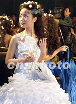 香港著名服裝設(shè)計(jì)師尹泰尉先生,一日晚在京舉行個(gè)人專場(chǎng)時(shí)裝發(fā)布會(huì),特邀參加此次展示的少女模特,為展示帶來青春浪漫的氣氛。中新社記者 錢興強(qiáng) 攝