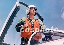 中國(guó)飛行員王偉與戰(zhàn)機(jī)(資料)