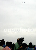 中外記者十二日凌晨七時(shí)許在中國(guó)海南省海口市美蘭機(jī)場(chǎng)邊,遠(yuǎn)遠(yuǎn)地目擊搭載美國(guó)軍用偵察機(jī)機(jī)組人員的美專機(jī)起飛離境。中新社記者 賈國(guó)榮 攝