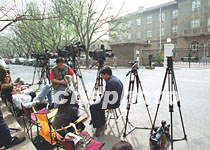 四月十八日,中美“關(guān)于美國(guó)軍用偵察機(jī)撞毀中國(guó)軍用飛機(jī)事件及相關(guān)問(wèn)題的談判”開始在北京舉行。美國(guó)駐華大使館再次成為媒體關(guān)注的焦點(diǎn)。中新社圖 史利 攝