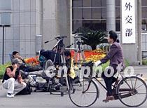 在北京外交部大樓舉行的中美談判,引起中外媒體記者的關(guān)注。在外交部門口擺開陣勢等著抓拍新聞的中外記者成為京城的一道風景。中新社記者 滿會喬 攝