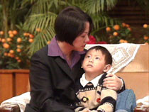 被美國軍用偵察機(jī)撞毀而犧牲的中國飛行員王偉的妻子阮國琴,二十日含淚懷抱兒子在北京人民大會(huì)堂參加中國黨政軍領(lǐng)導(dǎo)人的會(huì)見。
