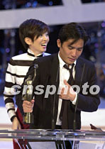 “第二十屆香港電影金像獎頒獎典禮”29日晚在香港文化中心大劇院舉行,影星梁朝偉憑《花樣年華》榮獲金像獎最佳男主角。中新社傳真 洪少葵 攝