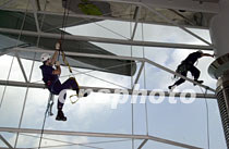 圖文:香港警方確保“財富論壇”順利進(jìn)行 2001年5月6日 09:31 ![]() 香港全面檢查《財富》全球論壇會場。香港官方搜爆隊的“蜘蛛人“,5月5日對“2001年《財富》全球論壇”會場進(jìn)行立體搜索。中新社傳真 任晨鳴 攝