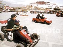 圖:布達(dá)拉宮前的廣場(chǎng)成為人們游樂的場(chǎng)所 2001年5月9日 19:55 ![]() 西藏拉薩市布達(dá)拉宮前的廣場(chǎng),成為休假日人們游樂的場(chǎng)所。兩位藏族兒童假日在廣場(chǎng)上開著小卡丁車,玩得十分高興。中新社圖 吳新華 攝