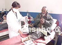 圖:藏醫(yī)院醫(yī)生為藏民治療 2001年5月9日 20:17 ![]() 西藏拉薩市藏醫(yī)院將傳統(tǒng)藏藥與中醫(yī)針灸療法結(jié)合,治療藏民常見病風(fēng)濕性關(guān)節(jié)炎,成效顯著。該院的門診醫(yī)生十七日正用電針灸為一位患嚴(yán)重風(fēng)濕關(guān)節(jié)炎的藏民治療。中新社圖 趙偉 攝