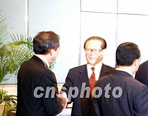 應(yīng)邀出席《財(cái)富》全球論壇香港年會(huì)的中國國家主席江澤民,8日下午在香港會(huì)展中心會(huì)見了與會(huì)的世界知名企業(yè)家和香港工商界代表。江澤民與代表一一親切握手、寒暄。中新社圖 張朔 攝