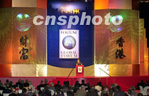 9日晚上在香港舉行的《財富》全球論壇晚宴上,世界各地商人名流匯集,聽取泰國總理塔信介紹泰國經(jīng)濟的發(fā)展情況。中新社傳真 洪少葵 攝