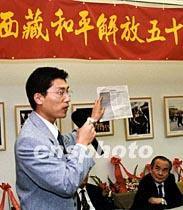 曾與海外藏獨(dú)分子有過正面交鋒的羅德島大學(xué)研究生莊輝廷,拿著一份刊有藏獨(dú)讕言的英文報(bào)紙,譴責(zé)藏獨(dú)分子捏造事實(shí),欺騙世界輿論的卑鄙行徑。他建議中國政府加強(qiáng)對(duì)外介紹西藏,讓世界知道西藏的真面目。中新社圖 龔文謨 攝