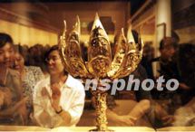 為紀(jì)念西藏和平解放五十周年,《雪域珍藏——西藏文物精華展》今天在上海博物館開幕。圖為展品吸引眾多上海市民觀看。中新社圖 姜煜 攝