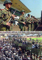 四川南充警方五月二十九日召開公捕大會,將五月在高坪區(qū)、順慶區(qū)進(jìn)行三起重大搶劫、殺人、強奸犯罪的犯罪嫌疑人劉天兵、劉天龍、廖雄、趙強四人公開逮捕。