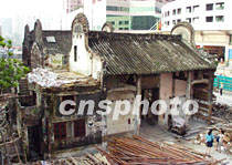 始建于雍正元年,孫中山曾批示要“永遠(yuǎn)保留”的廣州錦綸會(huì)館,因位于正在修建的康王路上,將被整體向后向西平移一百五十米,成為中國第二例文物建筑平移工程。圖為將被平移的錦綸會(huì)館。中新社圖 羅仰明 攝