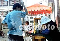 西藏拉薩的一位時(shí)髦青年正在八廓街上等著裁縫為他縫制衣服。如今身著時(shí)髦現(xiàn)代服裝的年輕人在拉薩街頭比比皆是。中新社記者 滿會(huì)喬 攝