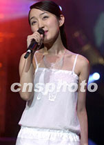 “同一首歌──走進澳門”演唱會十二日晚在澳門文化中心舉行,來自中國內(nèi)地、香港、臺灣、澳門的眾多新老歌星同臺演出,吸引眾多觀眾。圖為來自內(nèi)地的青春玉女歌星楊鈺瑩在演唱會上演唱。中新社傳真 宗金柱 攝