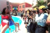 廣州房產(chǎn)開發(fā)商促銷新招百出,十七日,一個冠名“南洲名苑”的攝影大賽在該住宅小區(qū)舉行,主辦單位特邀一批靚女展示美姿,吸引了數(shù)百名攝影發(fā)燒友去拍攝。中新社記者 梁永強 攝