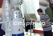 圖:“神舟”飛船模型亮相建黨圖片展 2001年06月18日 17:08 ![]() 一九九九年飛行試驗取得圓滿成功的“神舟”飛船模型即將在20日開幕的中共建黨80周年圖片展亮相。中國第一艘無人太空船“神舟號”試飛成功是中國航天史上一項重要的里程碑,同時也標(biāo)志著中國將進入載人航天時代。中新社記者 滿會喬 攝