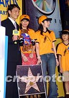 香港演星劉德華29日在香港繽紛荷里活餐廳領(lǐng)取2001年港臺最受歡迎男演員獎項時,接受影迷贈送的祝賀禮物。中新社圖 洪少葵 攝