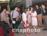圖:中外媒體記者在北京采訪中日貿(mào)易磋商 2001年07月03日 19:17 ![]() 在北京的中外媒體記者三日下午在中國(guó)外經(jīng)貿(mào)部談判大樓采訪“中日貿(mào)易磨擦問題正式磋商”。中新社記者 鄒憲 攝