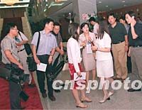 在北京的中外媒體記者三日下午在中國外經(jīng)貿(mào)部談判大樓采訪“中日貿(mào)易磨擦問題正式磋商”。中新社記者 鄒憲 攝