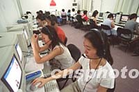北京艾伊亞行星英語(yǔ)教育培育中心,今夏在北京大力推廣澳大利亞英語(yǔ)教學(xué)專(zhuān)家研發(fā)的學(xué)習(xí)英語(yǔ)的多媒體軟件。這種可與劇中人插話、對(duì)話、跟讀的學(xué)英語(yǔ)方法吸引了大量的年青人參加。中新社記者 王麗南 攝